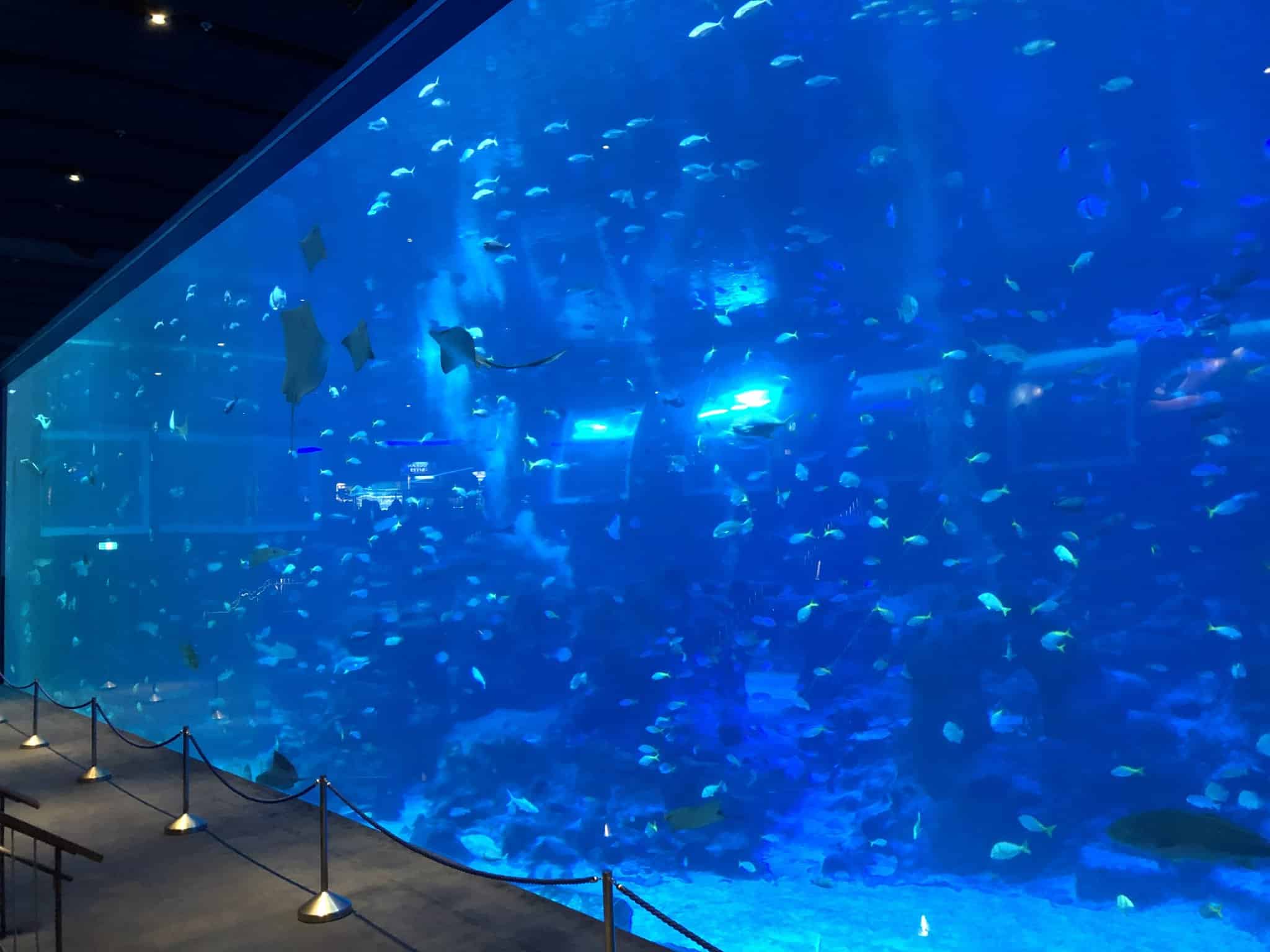 Em seu tanque principal, o Open Ocean Habitat, encontramos um painel de acrílico de 36 metros de comprimento e 8,3 metros de altura, o que deixa o ambiente lindo de se ver (é fácil passar um bom tempo ali só admirando aquela imensidão!).