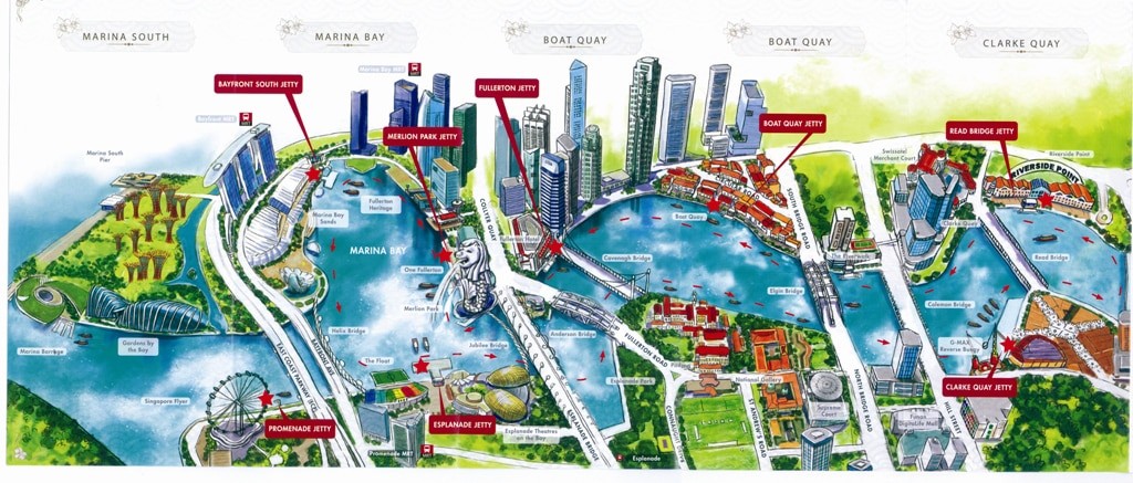 Andar por suas margens é uma atração à parte, mas o que mais fascina os turistas é o passeio de barco pelo rio, principalmente se combinado com o show de luzes que acontece à noite em frente ao complexo do Marina Bay Sands.