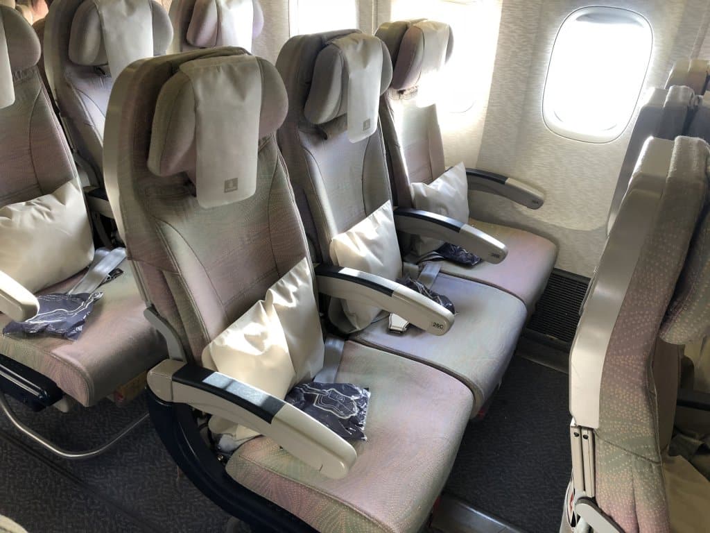 A configuração da classe econômica é 3-4-3 e tem um bom espaço entre as poltronas e altura que eu já falei.