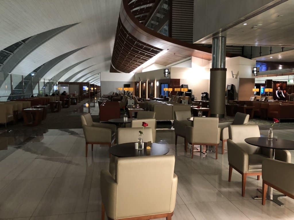 Quem voa de Primeira Classe da Emirates tem um lounge exclusivo em Dubai. Eu fiquei no lounge da executiva que é muito bom também. Ele é imenso e posso dizer que é um dos melhores que eu já vi.