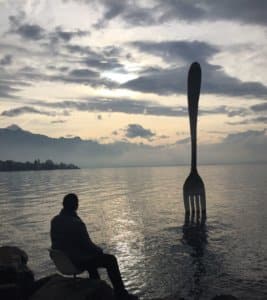O garfo fincado no Lago Léman avisa: você está prestes a conhecer um pouco da história da alimentação! Essa inusitada obra de arte que acabou se tornando um dos símbolos da cidade fica em frente ao Alimentarium, museu fundado pela Nestlé que mostra vários aspectos da alimentação humana.