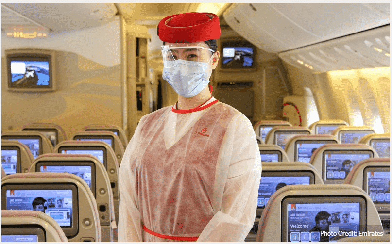 EMIRATES tem um comissário extra por voo apenas para limpar com frequência as aeronaves (eles usam esta roupa especial, olha).