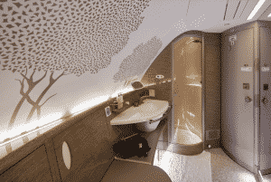 Embora os assentos não tenham mudado, a Emirates atualizou os acabamentos de seus assentos da classe executiva do A380. Os 76 assentos agora apresentam capas de couro na cor champanhe e acabamento em madeira. Esse mesmo esquema de cores também foi aplicado ao lounge.