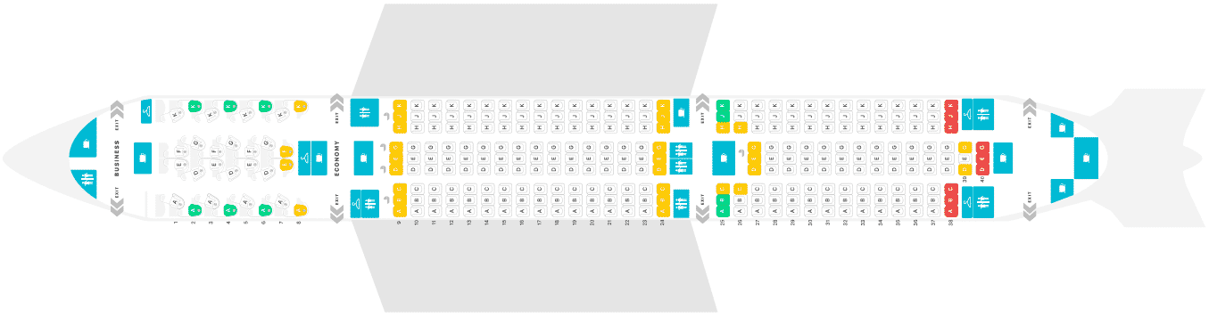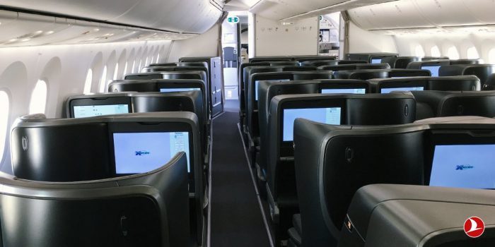 A configuração desta aeronave na Turkish Airlines conta com 30 assentos fully-flat na classe executiva, onde todos tem acesso ao corredor, e 270 assentos na classe econômica.