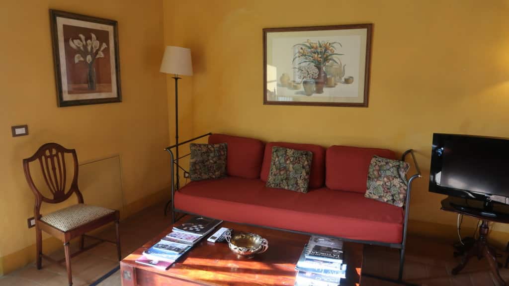 Ele foi construído em um castelo secular, a cerca de 15 minutos de Siena. Os quartos são imensos! Com camas num estilo bem clássico e decoração rústica. A cara da Toscana!