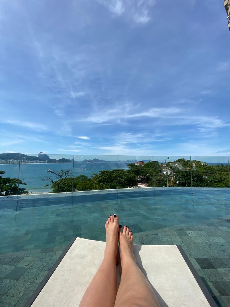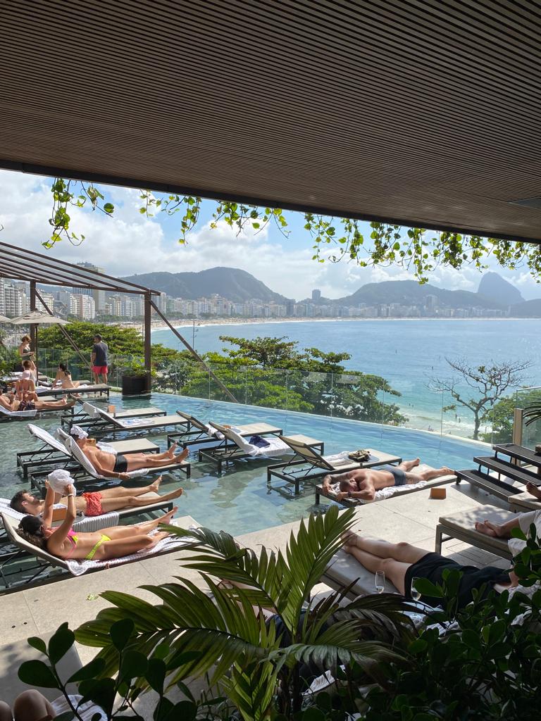 A primeira localizada na frente do hotel, ideal para o sol da manhã, com uma vista privilegiada de toda a orla de Copacabana e o Pão de Açúcar ao fundo da paisagem, tem borda infinita e espreguiçadeiras estrategicamente colocadas ao seu redor e dentro da água.