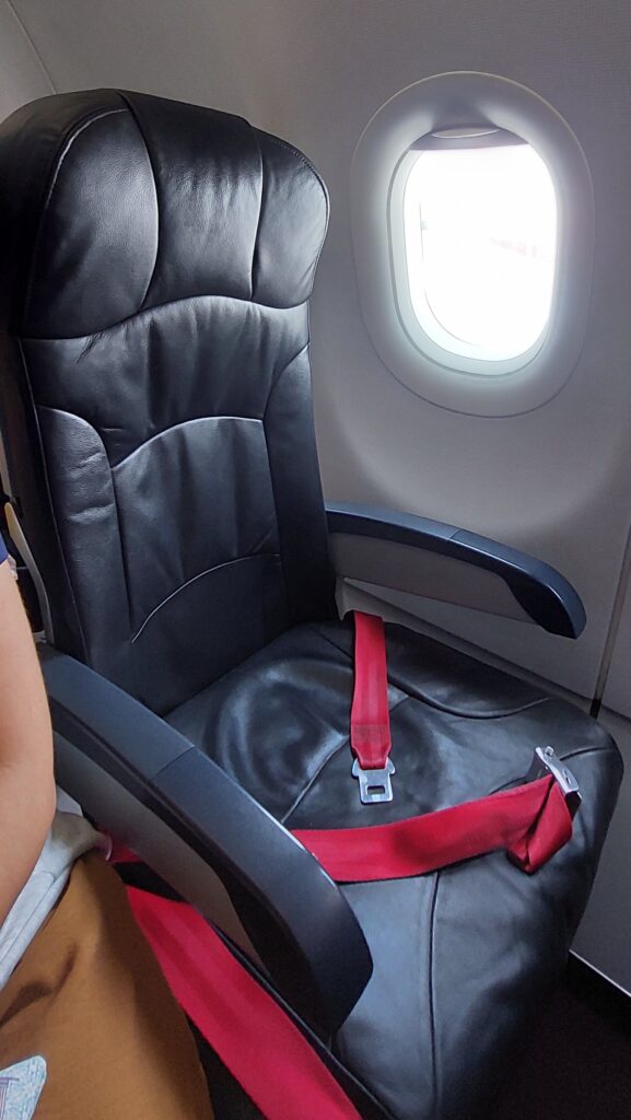 As poltronas eram de um acolchoado confortável e espaço lateral e para as pernas bem parecido com os de uma Econômica convencional. Apesar de um pouco menor, ainda conseguia ser mais cômodo que a maiora das low costs.