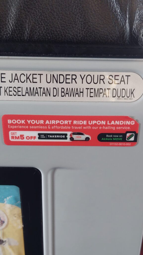 Não há entretenimento a bordo, então você precisa levar o seu próprio. Mas, no caso desse voo de Kuala Lumpur a Krabi, que foi de apenas 1h, isso não fez falta.