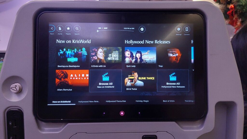 Sendo um cliente do programa de fidelidade KrisFlyer, os passageiros também tinham acesso a wi-fi para aplicativos de mensagens, redes sociais, buscadores e e-mails.