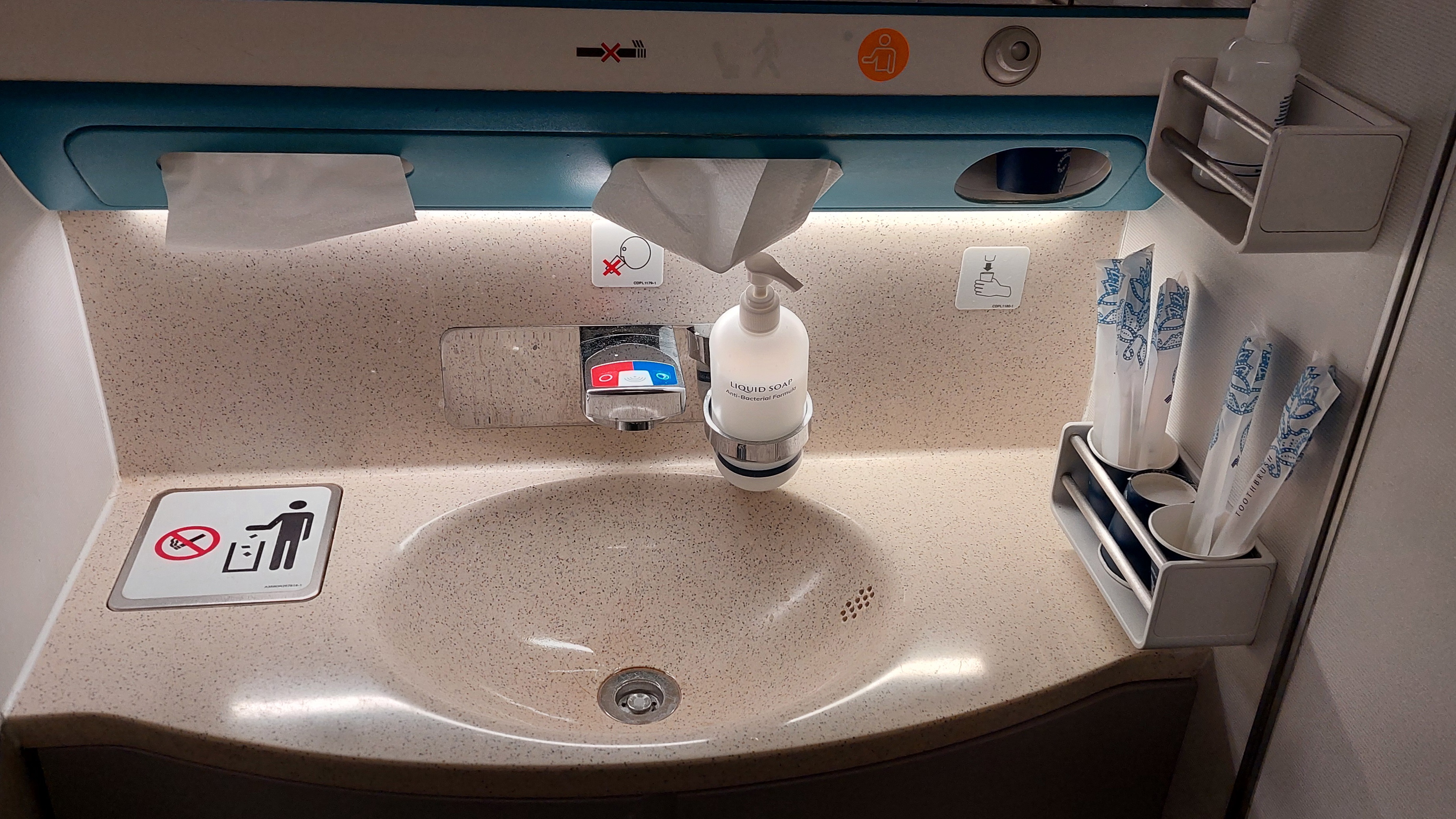 Também acho válido reforçar que eu nunca tinha visto uma companhia se preocupar tanto com a limpeza dos banheiros. Constantemente, os comissários entravam para checar se o espaço estava organizado, se faltava papel ou algum amenity, e aproveitavam para aromatizar o local.