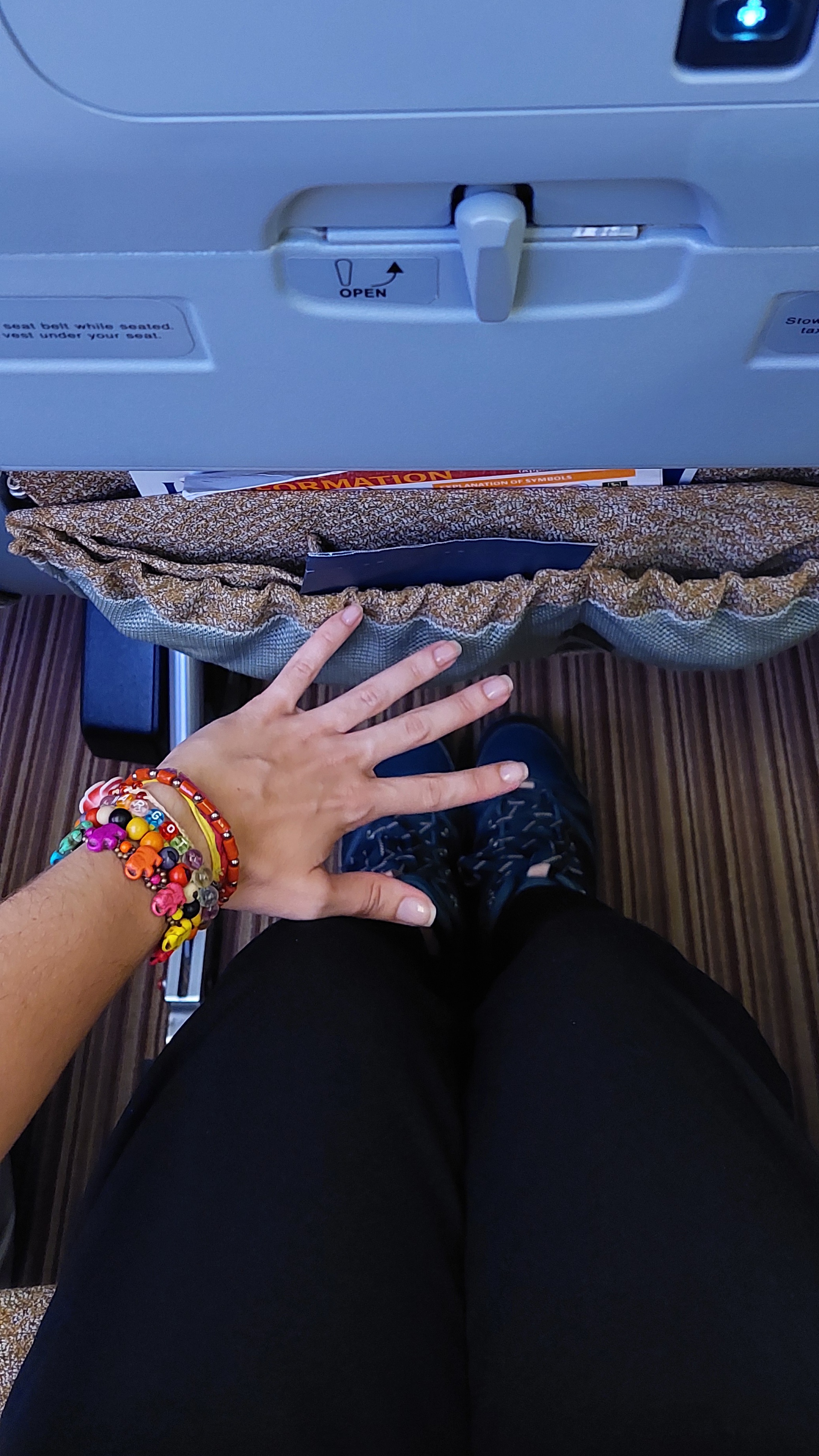 E outra coisa que gostei bastante é que os bolsões da poltrona à frente tinham várias divisórias e eu pude organizar as coisas que eu ia usar durante o voo.