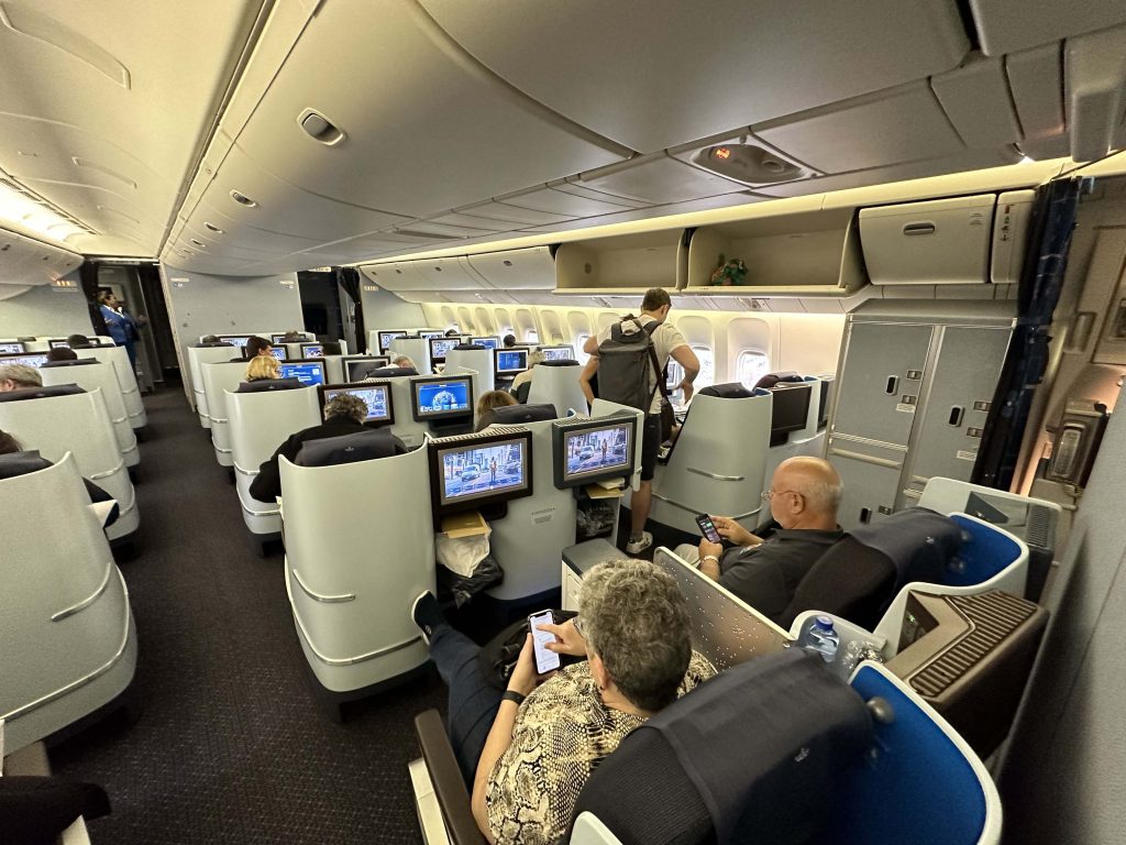 O voo para o Brasil foi feito em uma aeronave Boeing 777 e o embarque foi feito em duas pontes, uma com acesso à classe executiva e a outra para as demais classes (econômica e econômica premium).