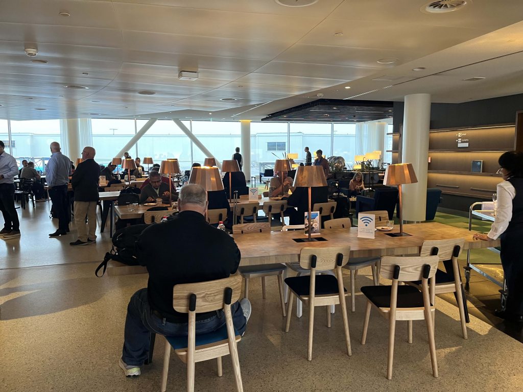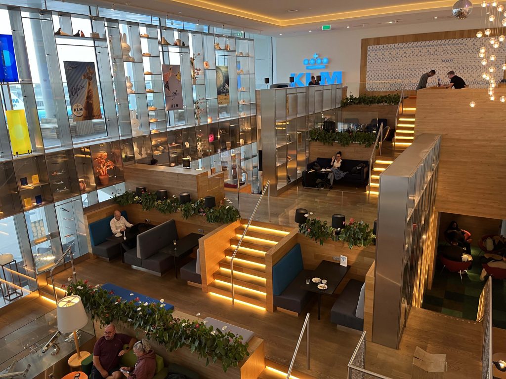 O próximo voo até o Brasil é a partir do aeroporto de Schipol, em Amsterdã. Depois do desembarque, passamos pela imigração e fomos direto para a Sala VIP da KLM, que é uma das minhas preferidas pelo mundo.