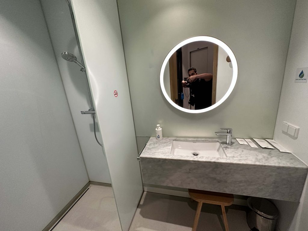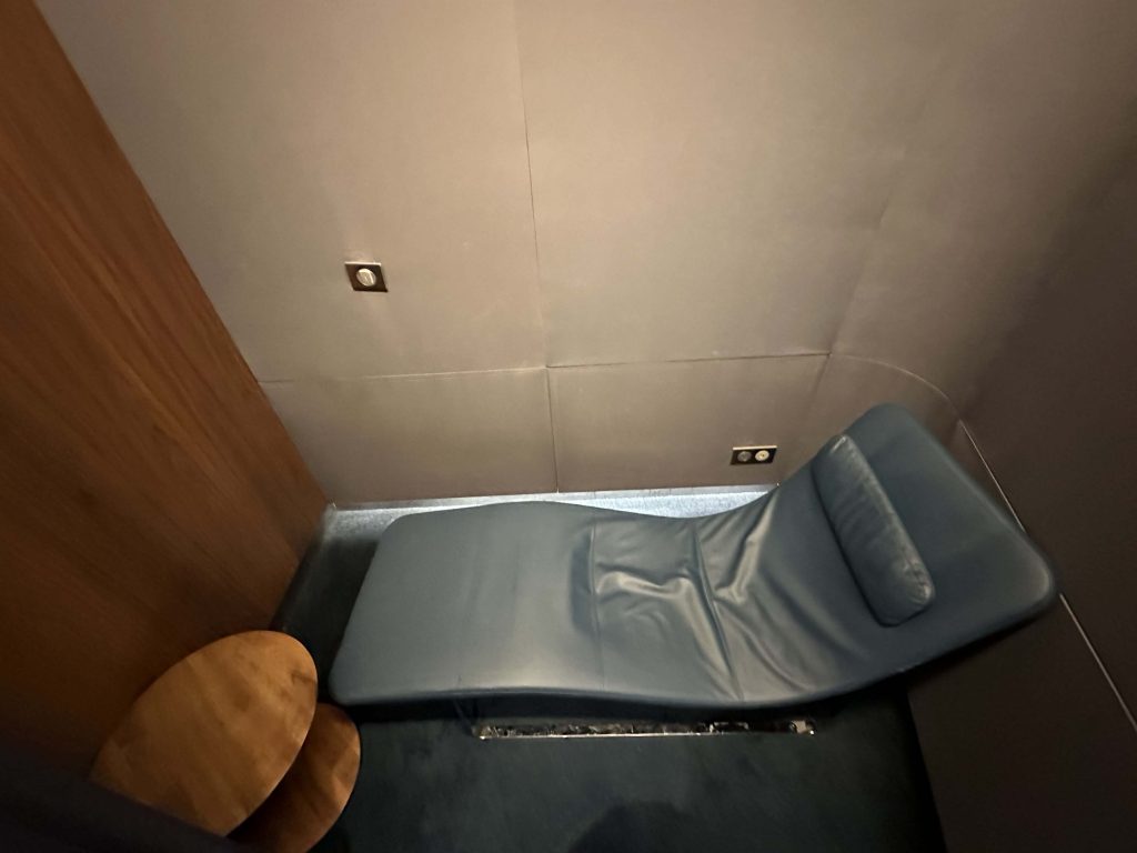 Tem ainda banheiro para um banho, espaço para descanso, sala do silêncio, bar, restaurante, terraço e muito mais. Uma verdadeira experiência para o passageiro que está aguardando seu voo.