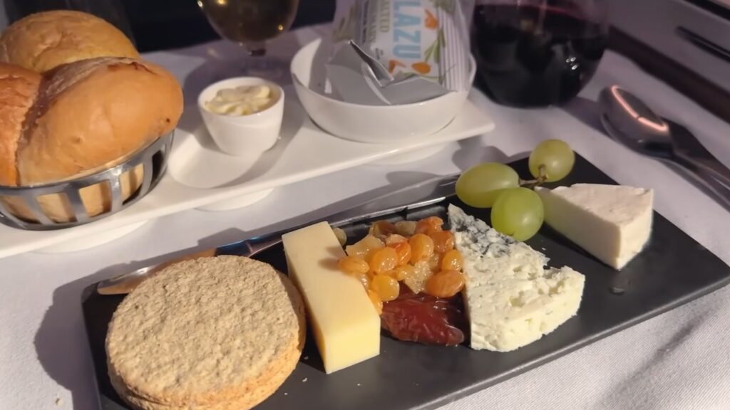 Entre o jantar e o café da manhã, os comissários deixam um pequeno bar montado na galley com snacks e bebidas disponíveis para os passageiros da classe Executiva. Inclusive, os produtos disponíveis eram de marcas de bastante qualidade.