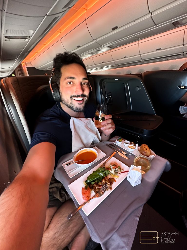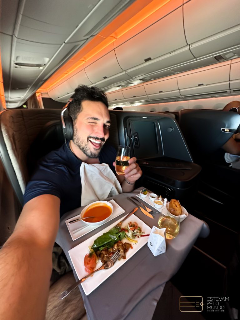 Este primeiro voo teve apenas 4 horas de duração. Por isso, não foi uma viagem tão boa para provar a executiva da companhia pelo tempo curto. Por exemplo, o assento não é cama, justamente pelo curto tempo de voo, mas até que reclina bastante o encosto. Já o apoio para os pés, não é nada bom, porque não sobre o suficiente.