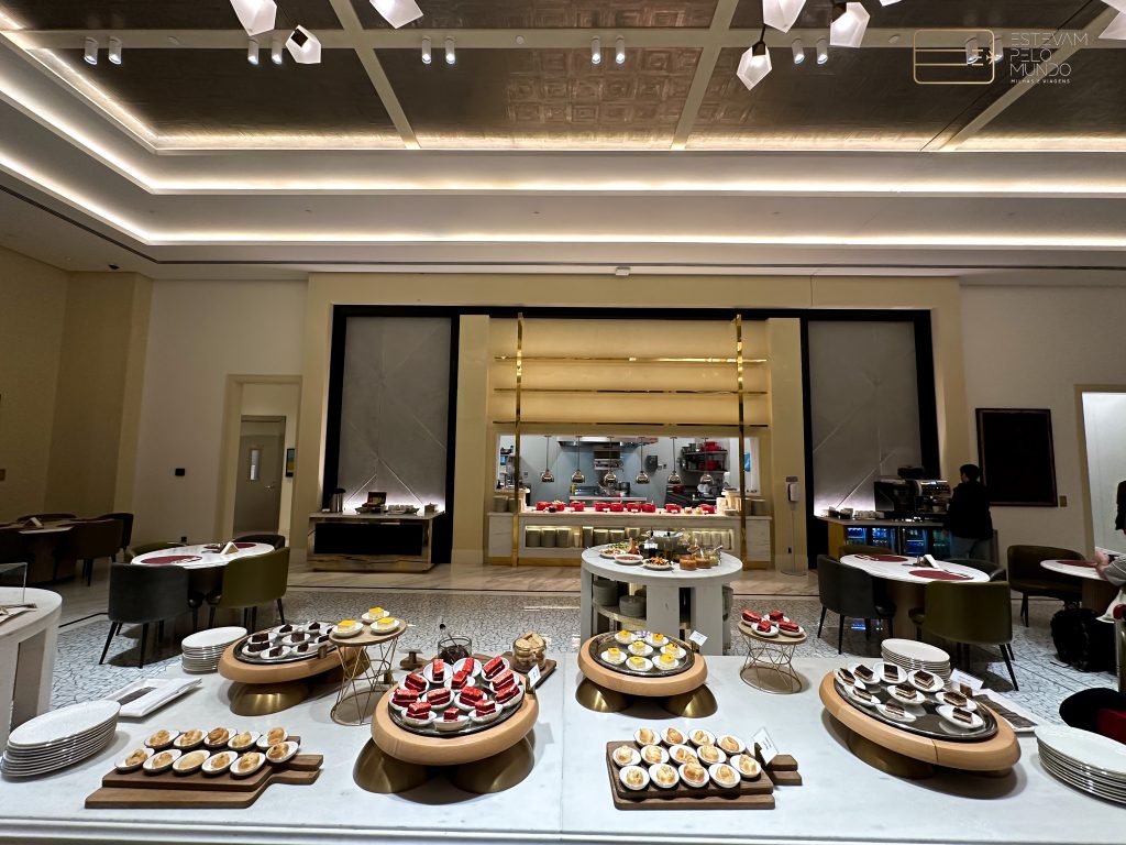 Depois, segui para o Pearl Lounge. Este foi um dos lounges mais legais que eu já conheci, tem até um hotel dentro dela. Consegui o acesso a este lounge por conta da categoria da minha passagem, mas todo mundo que segue aqui o portal ou fez os meus cursos Cartão de Crédito Expert ou Viajando com Milhas sabe como acessar as melhores Salas VIPs do mundo.