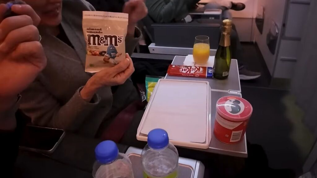 Após decolarmos, os comissários ofereceriam toalhas quentes para higienizarmos as mãos e, depois, iniciaram o serviço de bordo.