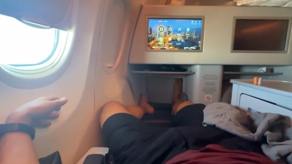 Eles dão um kit de cama com travesseiro e manta, então realmente dá para dormir na viagem.