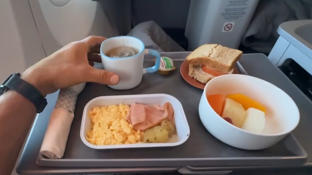 Meu voo saiu bem cedo pela manhã, então a refeição servida foi um lanche pós decolagem e um café da manhã.
