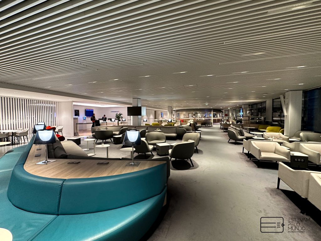 Antes do embarque, fui conhecer a sala da Air France. A Latam oferece acesso a este espaço para clientes Black, Black Signature ou para quem voa na sua executiva.
