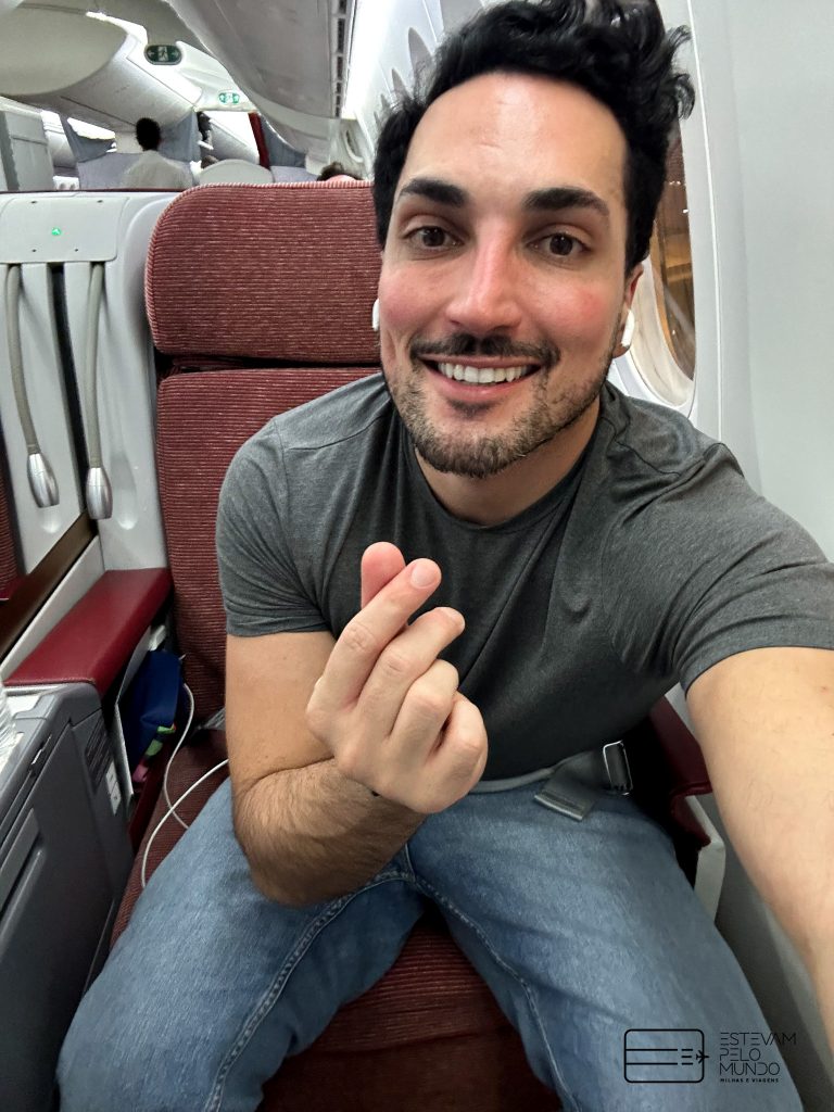 O voo de volta foi feito na executiva de um 787-800 Dreamliner em um trajeto de quase 11h. Os assentos já estavam equipados com os mimos da classe com um pillow top e edredom com travesseiro, além de uma água e o menu.