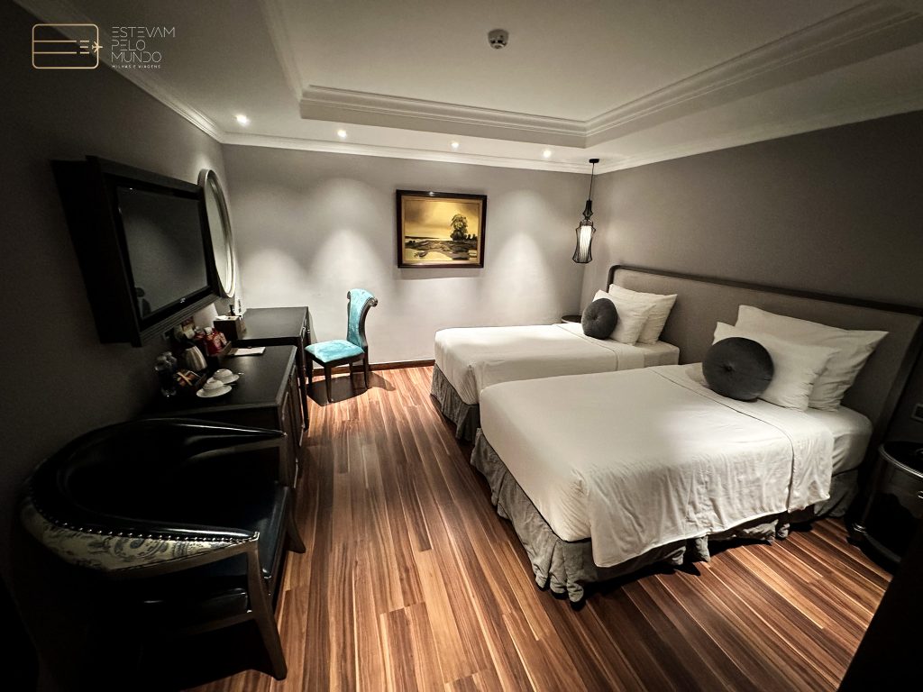 Os preços foram muito baratos. O Bary é um hotel boutique 4 estrelas, com excelentes resenhas no Booking, e custou US$ 55 a diária para duas pessoas. Já o Hanoi L’Heritage Hotel custou US$ 50 a diária com café da manhã.