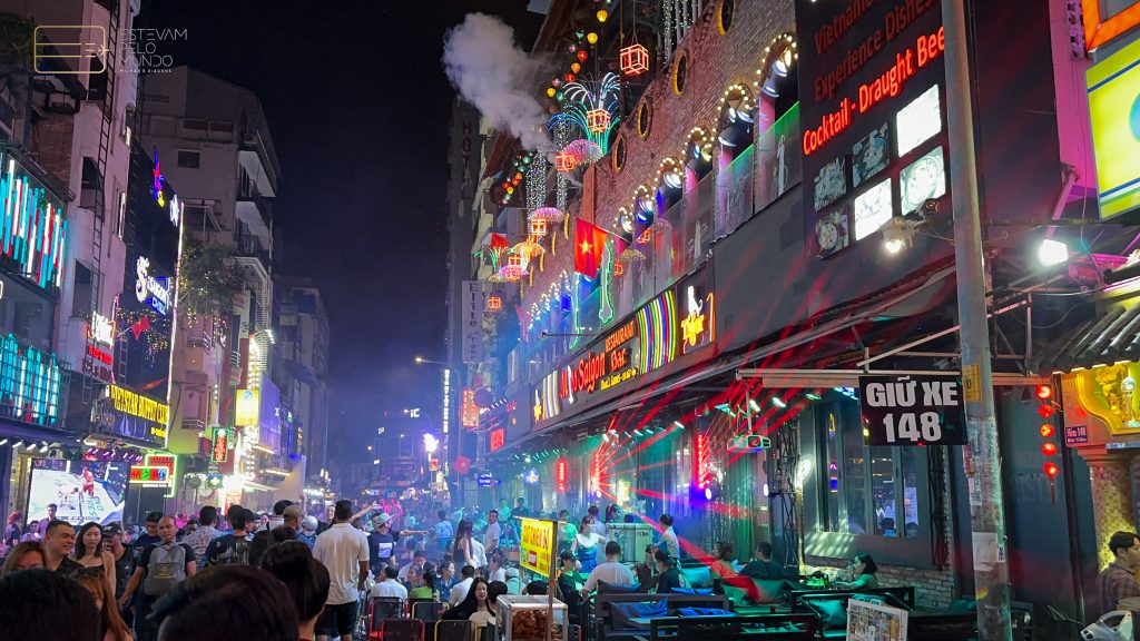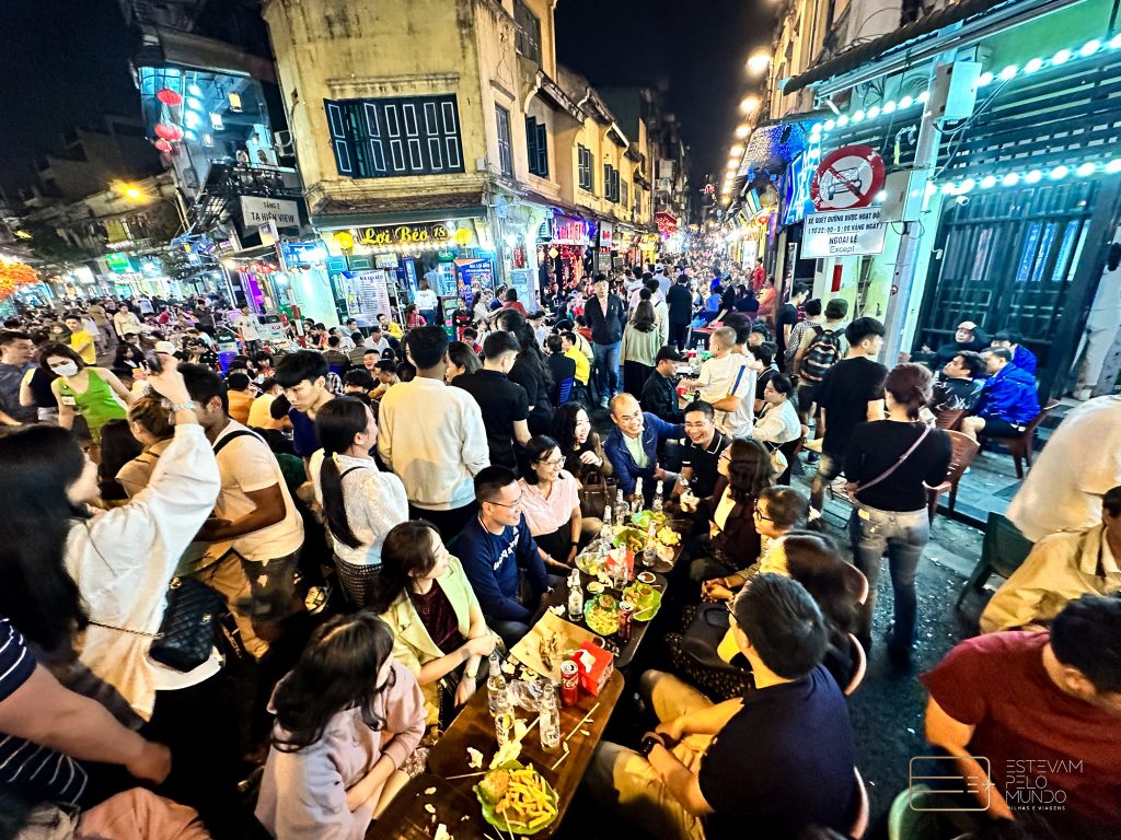 A noite de Hanoi é bem agitada e as pessoas colocam mesas e cadeias nas ruas. É muito lotado de gente, moto, uma loucura. Uma dica mais tranquila é curtir a noite no rooftop do Peridot Grand Hotel ou no Cloud Sky Bar.