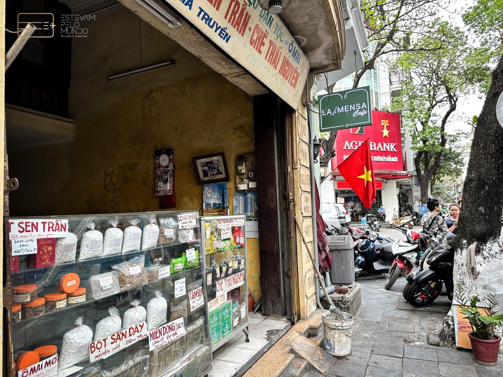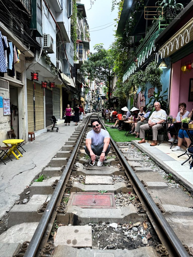 Outro lugar interessante é a Hanoi Train Street, uma linha que passa pelo meio da cidade. Aliás, parece muito com aquela linha de trem da Tailândia. É o mesmo esquema, quando o trem chega, o pessoal afasta tudo, passa o trem, e depois volta tudo de novo. É uma loucura porque o trem passa muito perto das casas, das pessoas.