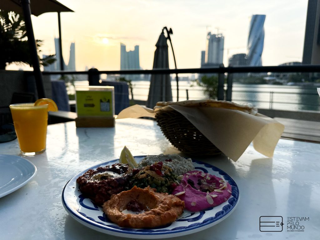 Um lugar muito bom para comer é o Lumee, no shopping The Avenues, que serve comidinhas típicas do Bahrain. E para encerrar o dia, ver o pôr do sol tomando um drink e aproveitar uma bela vista, a dica é o rooftop do Four Seasons Hotel e o bar Blue Moon. Você não precisa estar hospedado no hotel para usar estes espaços.