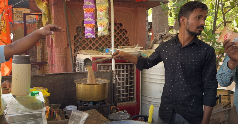 Chá Masala – tomei diversas vezes durante minha estadia na Índia. Nessa ocasião, em Jaipur, fui convidado a ir numa barraca que ferve o chá o dia inteiro.