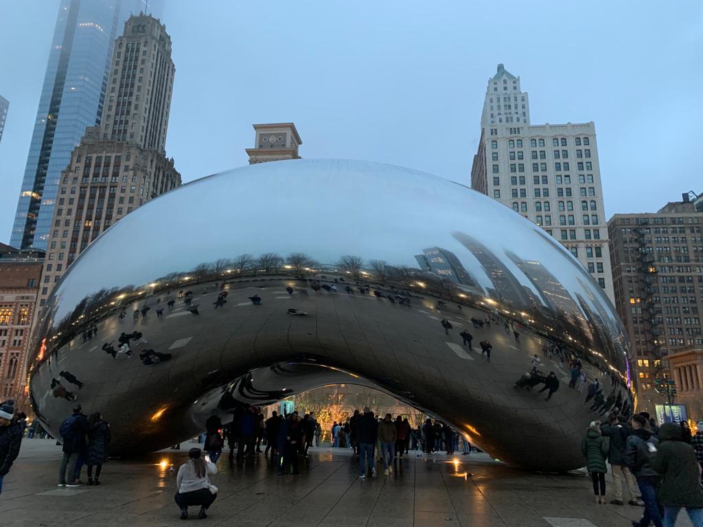 Cloud Gate – o cartão postal da cidade, uma escultura localizada no Millennium Park, que por causa do seu formato foi apelidada de “The Bean” (O Feijão).