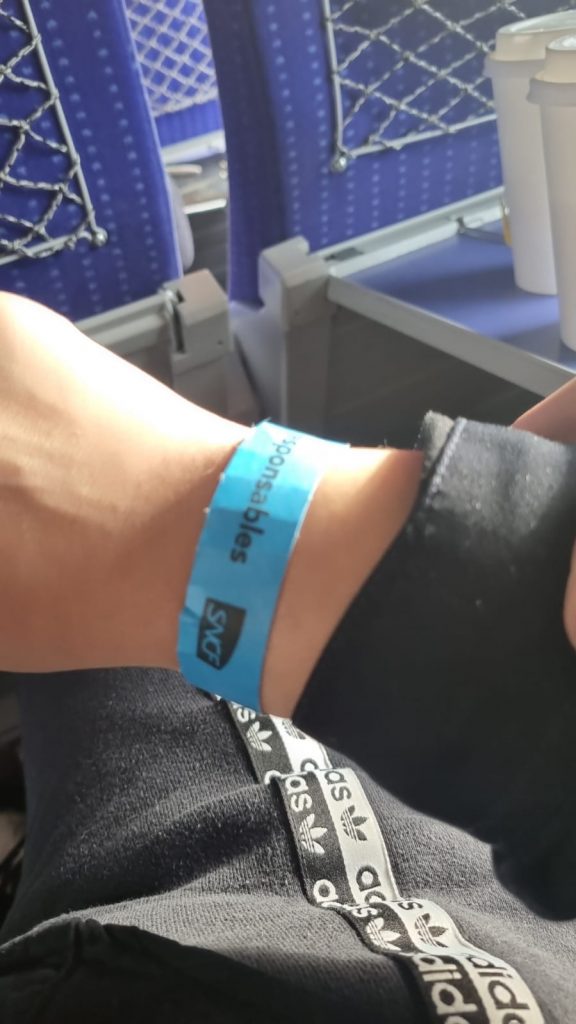 De Paris, o trem que nos leva até Gèneve sai da estação Gare de Lyon. Ao chegar na estação alguns funcionários abordam os viajantes para verificação do passe sanitário, parei para entender o que estava sendo pedido e poder contar melhor para vocês o que seria necessário, e apesar do QR Code do nosso certificado não funcionar, eles verificam as datas da vacina e qual vacina você tomou, e isso basta para ganhar a pulseira azul, que te caracteriza como uma pessoa verificada.