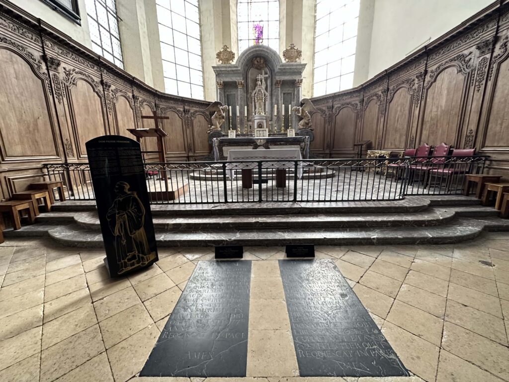 E a primeira parada do passeio foi na Eglise Abbatiale, onde está enterrado o criador da famosa bebida champagne.