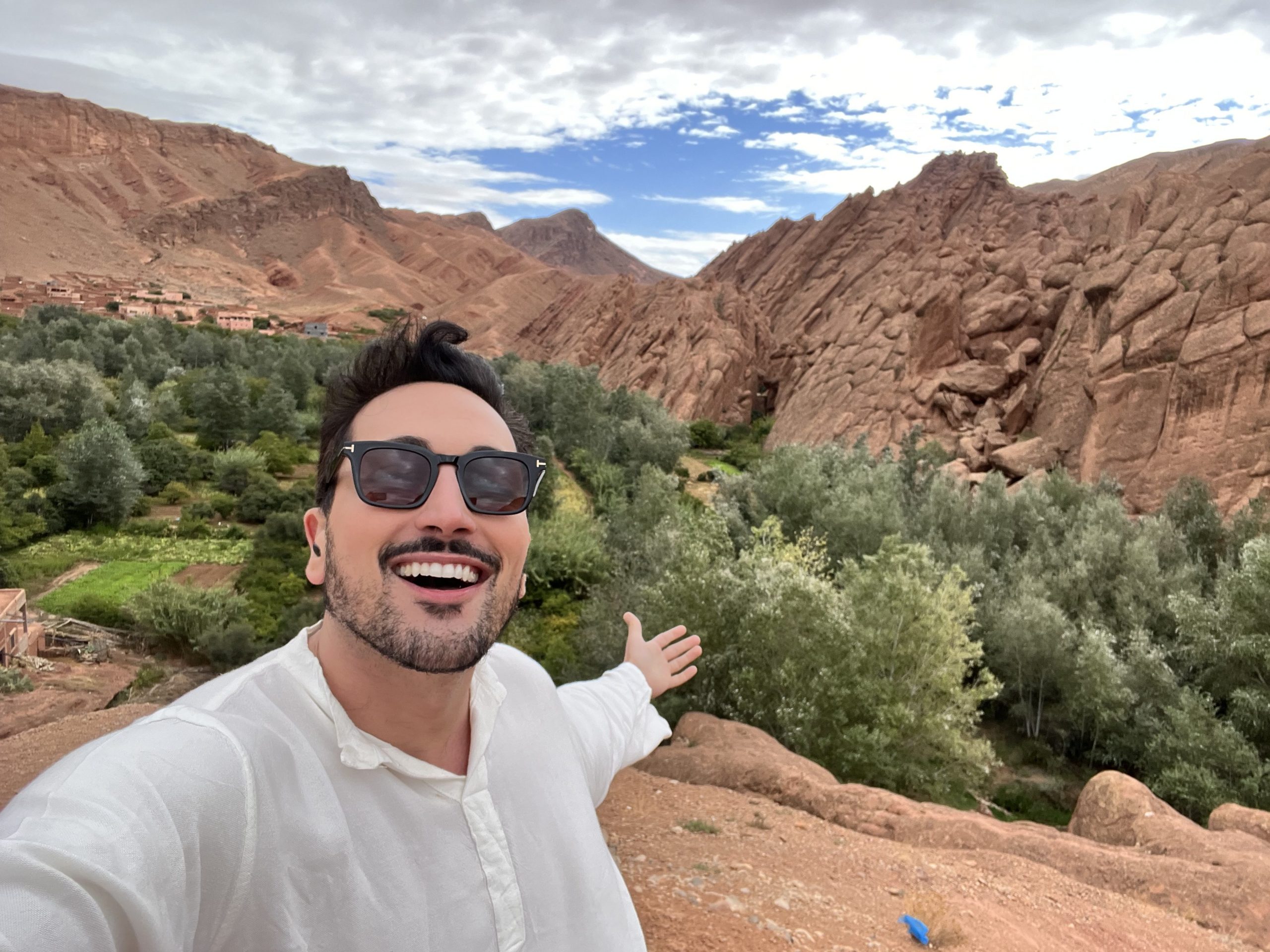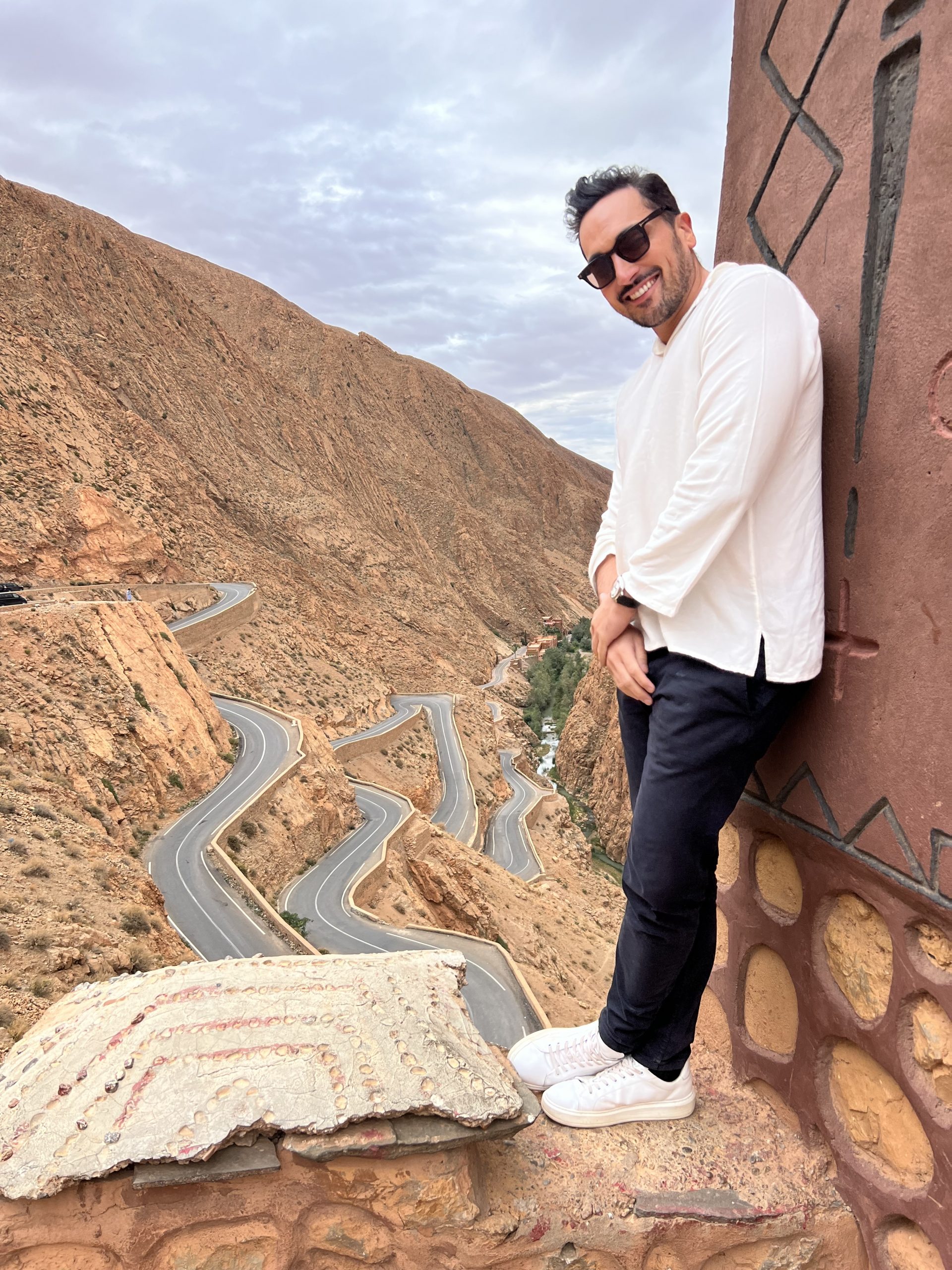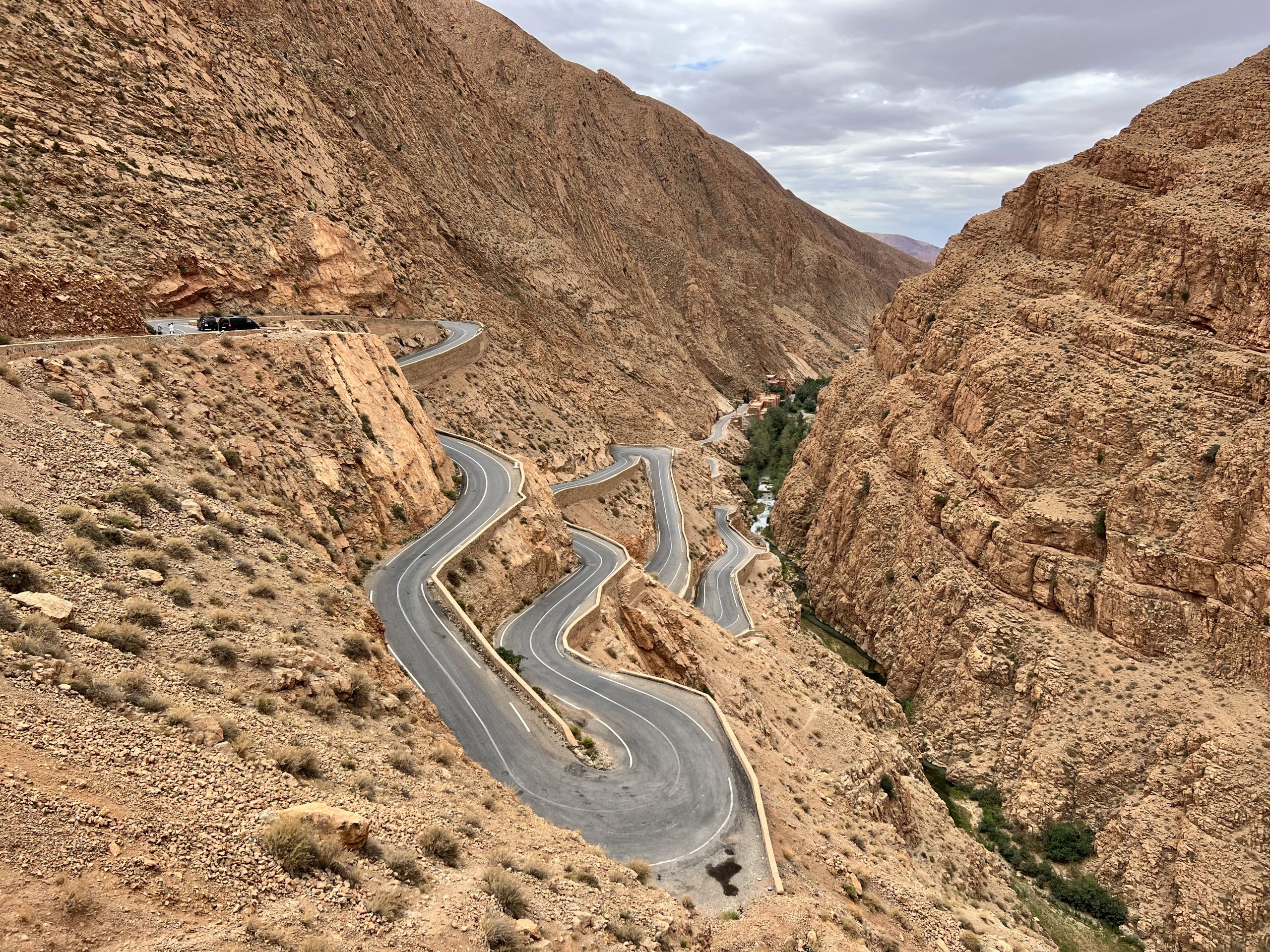 Nossa noite foi em um hotel chamado Panoramique De La Vallee e no dia seguinte, seguimos sentido deserto. Nossa primeira parada foi na Dadès Gorges (Gargantas Dades), uma série de desfiladeiros esculpidos em meio à Cordilheira do Atlas, onde também estão estradas tortuosas.