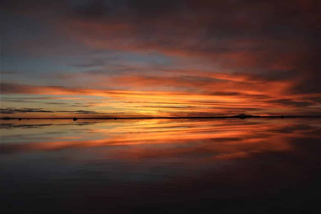 O Salar de Uyuni é o maior deserto de sal do mundo. São 12 mil quilômetros quadrados, numa altitude de 3.650 metros acima do nível do mar. Tudo isso já esteve sob a água, que evaporou ao longo de milhares de anos e formou este sólido e imenso piso branco de sal.