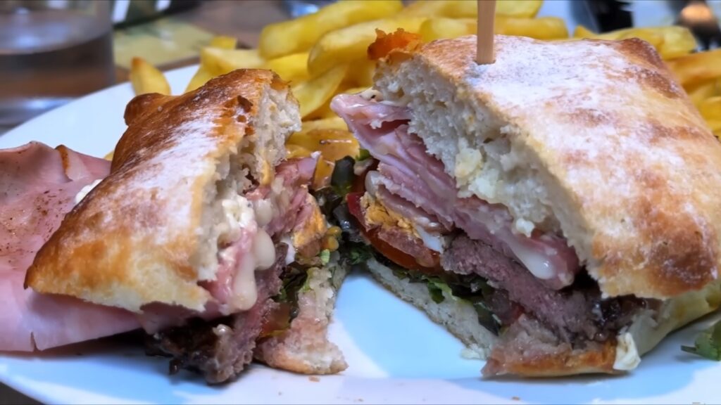 Noaa outra experiência com asado foi no Mostrador Parrilla e aproveitamos também para provar o chivito, um sanduíche de carne assada que se parece com os lanches “x-tudo” que temos no Brasil.