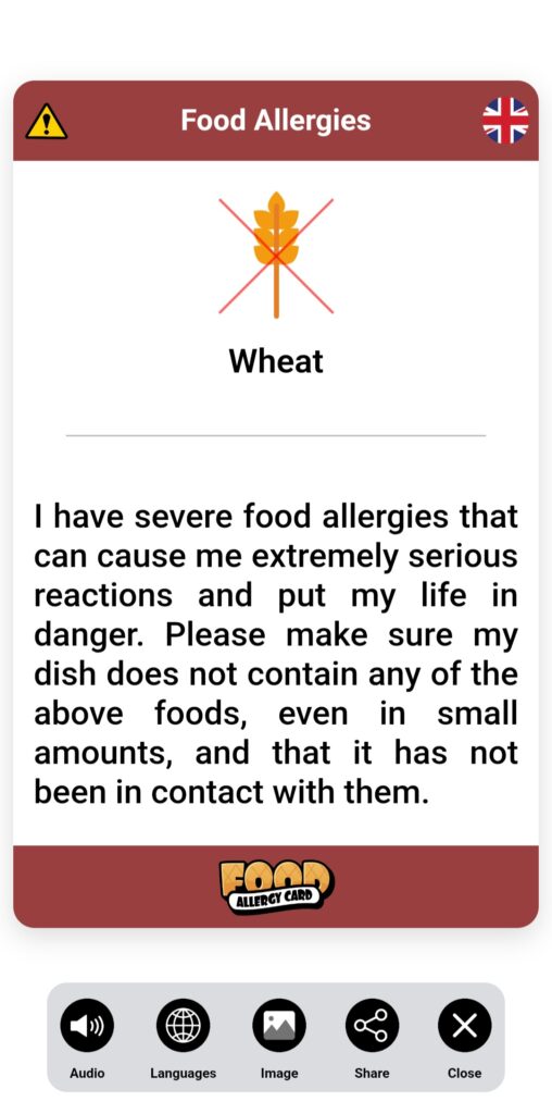 - Para quem tem dificuldade de comunicar suas restrições alimentares em outros idiomas, alguns aplicativos ajudam você a criar uma mensagem automática e colocá-la em idiomas diferentes para conseguir pedir sugestões de pratos que atendem sua necessidade. Exemplos: Food Allergy Card; My Allergy Card.