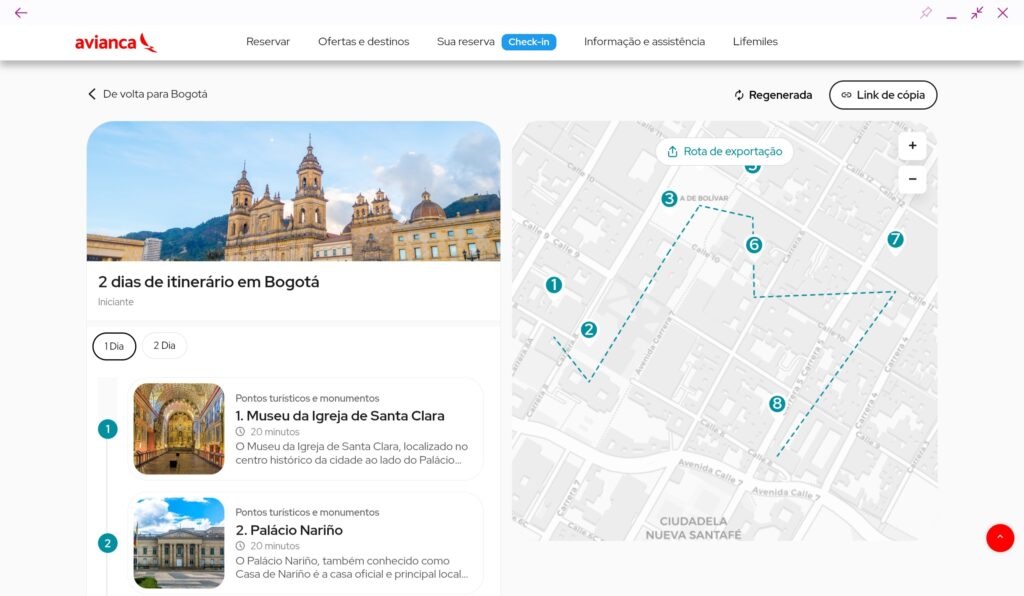 Já era possível conhecer Bogotá com conexões longas da Avianca. Mas, para facilitar a busca de passagens e te ajudar com uma rápida programação na cidade, a companhia aérea otimizou seus canais, em parceria com o Instituto Distrital de Turismo, uma página com ferramentas que vão auxiliar os passageiros que passam pela Colômbia. Confia mais sobre o stopover da Avianca.