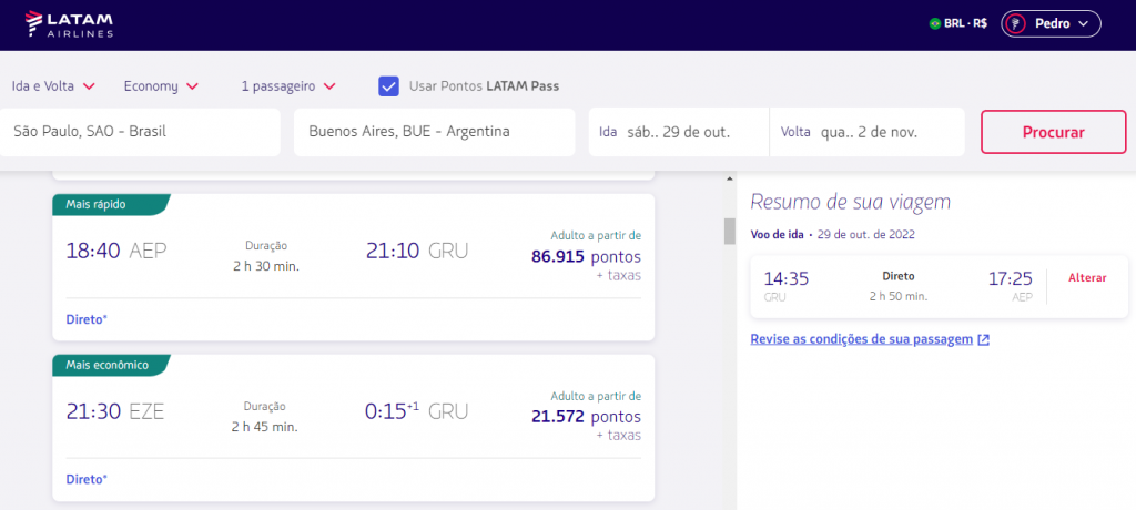 Os participantes do Alerta Promos estão sendo informados sobre as oportunidades de passagens na Megapromo Latam e souberam em primeira mão das passagens à  Buenos Aires, saindo de São Paulo, a partir de 15.640 pontos, com várias opções de datas, inclusive no feriado de Finados!