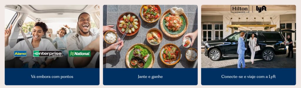 Assim como associar seu número Hilton Honos nos serviços de corridas Lyft e aluguel de veículos com a Alamo, National e Enterprise rendem pontos no programa de hospedagem, você também pode fazer o caminho inverso e usar os pontos Hilton para pagar pela contratação de corridas por aplicativo ou locação de veículos.