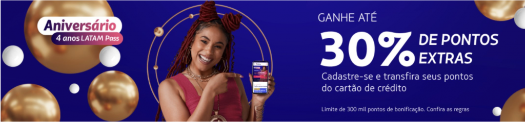 - 30% de bônus para os assinantes do Clube LATAM Pass;
