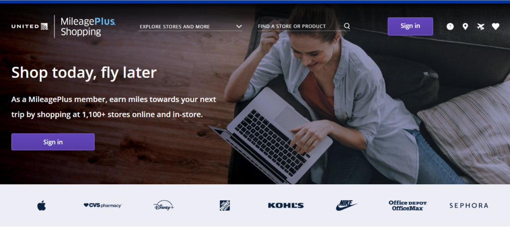 O Mileage Plus da United (uma companhia aérea dos Estados Unidos), também possui um shopping online, semelhante ao da Smiles. Comprando na plataforma em lojas associadas, os clientes recebem milhas Mileage Plus como recompensas.