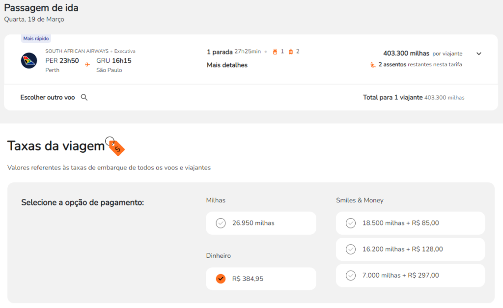 A seguir, apresentamos exemplos de resgate de passagens na Smiles: