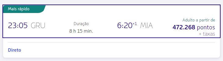 Passagem Classe Executiva SP para Miami (somente ida), em maio de 2022, pelo custo de 472.268 milhas!