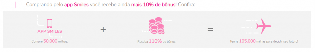 E tem mais! Comprando pelo app Smiles, você recebe mais 10% de bônus.