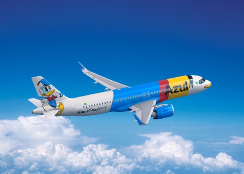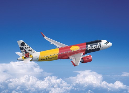 O primeiro resultado da colaboração entre Azul e Walt Disney World Resort é um avião A320neo, com uma pintura inspirada em Mickey Mouse.