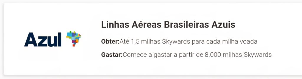 - solicitando conversão de milhas de um voo realizado com uma alguma das 20 empresas parcerias – incluindo Azul e GOL;