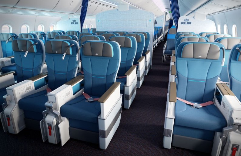 Os novos assentos na Classe Premium Comfort foram projetados pela Collins Aerospace em conjunto com especialistas da KLM Customer Experience. Além de seu design elegante e características de conforto, os assentos também são mais leves do que os designs anteriores.