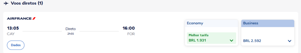 A viagem terá cerca de 2h50 de duração, saindo de Fortaleza às 15h e chegando em Caiena às 17h50 com frequencia às quartas-feiras.